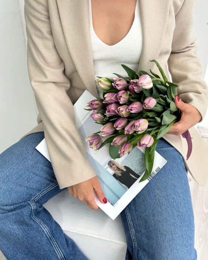 Главная страница » Магазин » Товары на праздник » Цветы » Тюльпаны » 19 сиреневых тюльпанов