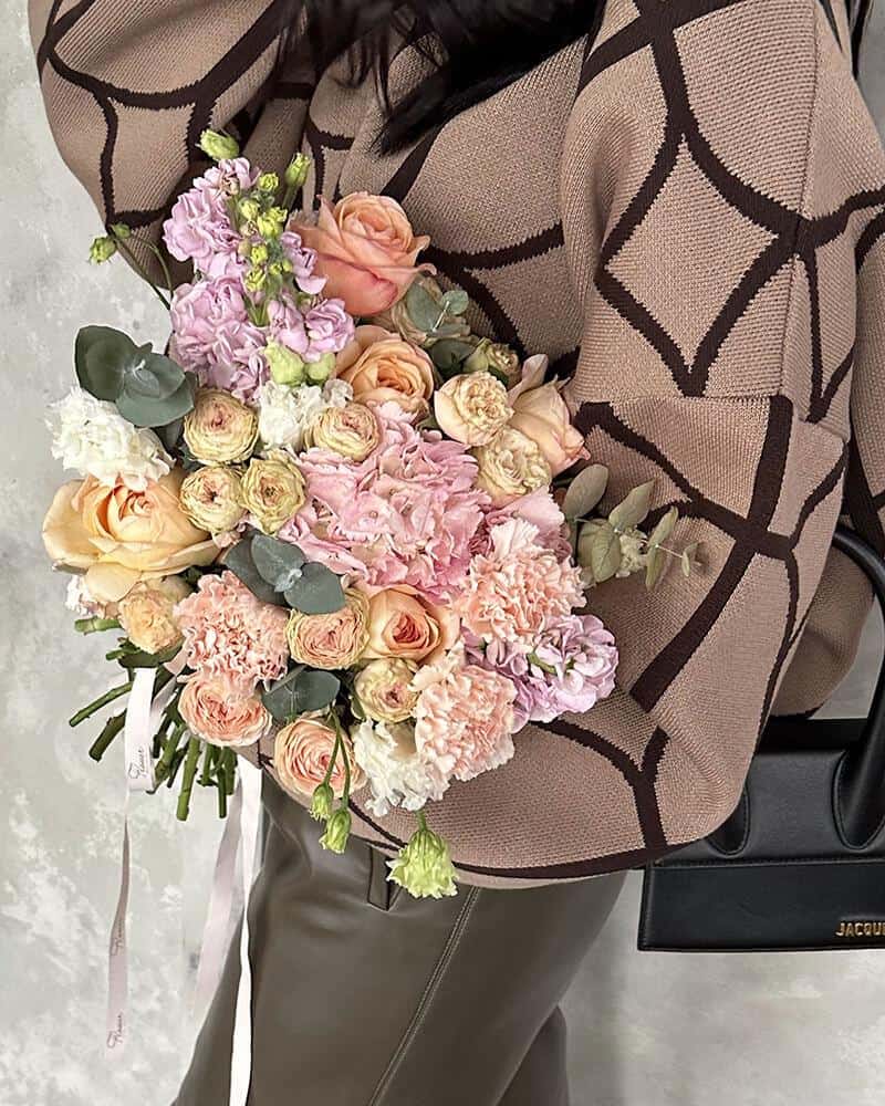 Букет из микса пастельных цветов — нежное и уникальное решение для подарка близкому человеку.